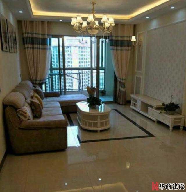 上圖是客廳,面積客廳面積比較寬敞。由于買房以花去大部分的錢,所以裝修上家具就選擇簡(jiǎn)單點(diǎn)了??蛷d就一個(gè)深灰色的沙發(fā),白色的茶幾。地面的裝修時(shí)在平常不過的地磚了。由于墻壁較大所以墻壁對(duì)面做了一個(gè)電視背景墻。
