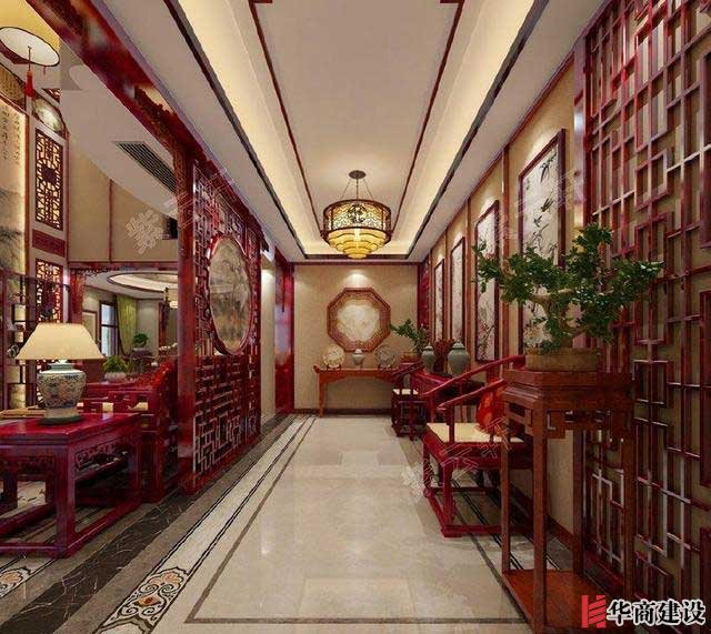 現(xiàn)代中式客廳裝修效果圖,提空的設(shè)計提升了客廳的格局氣度,兩層設(shè)計更顯大氣華美,客廳中紅木桌椅的富貴精美與中堂畫的素雅淡邈相映成趣,更加深化了中式的氣質(zhì)。