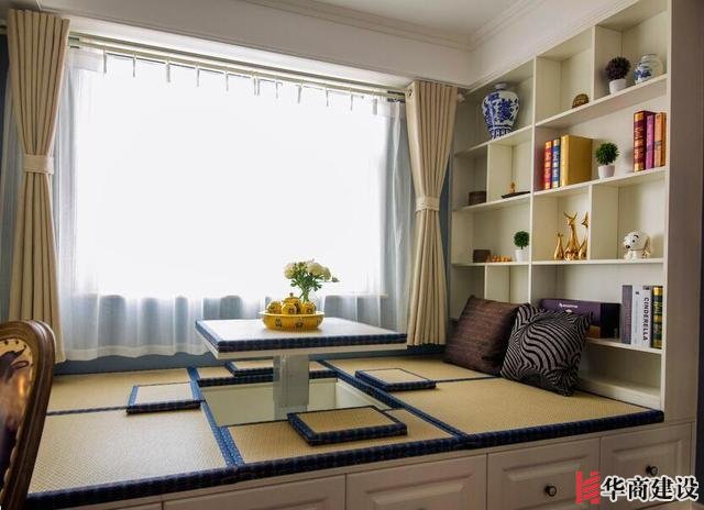 擔(dān)心墻面都是柜子顯得壓抑的話,還可以選擇榻榻米+展示架,放一些裝飾物,書籍、花瓶、鐘表、相框、綠植等等,提升美感,讓房間更加有活力。