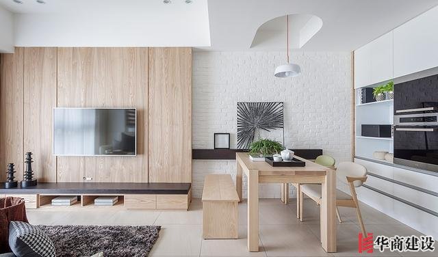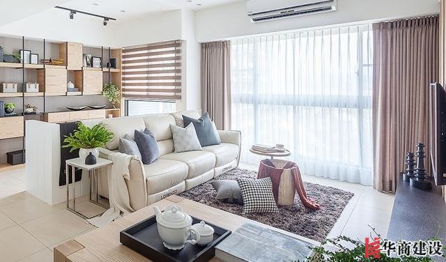 客廳就在餐廳一側(cè),沒有陽臺,大大的落地窗光線比較好,米色的真皮沙發(fā),原木硬包的電視柜,簡約大氣,視覺感很舒適。沙發(fā)背景墻就是和書房之間的隔墻,原本的墻面直接拆掉了,沙發(fā)背景墻變成了書桌的背板,節(jié)省空間,這樣兩個空間的光線都相互融合,很敞亮。