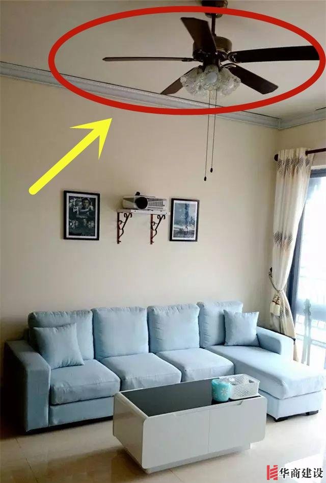 4、這種吊扇燈千萬別裝裝!有一次見到覺得造型真別致,又是燈又是電扇!其實這個燈瓦數(shù)都特別小,客廳常年都是昏昏暗暗的!最麻煩還不是這個,是掉灰!那個扇葉沾灰的能力簡直無敵!天熱了你也不能直接開還得爬上去清灰!裝這個真的是腦殘!