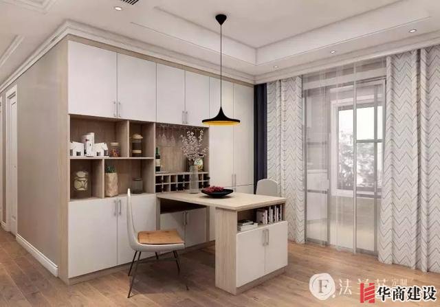 小吧臺設計,既省空間,又時尚前沿。一次性餐廳的設計都省了。一物兩用提升空間利用率;品著小酒追劇,這感覺也是蠻小資的。