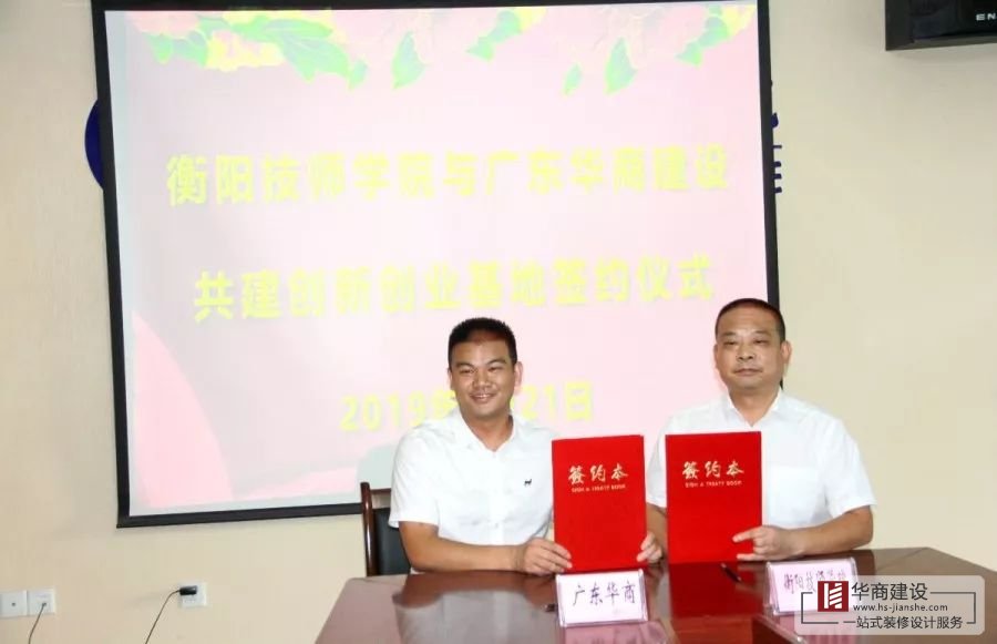2019年8月21日,廣東華商建設(shè)與衡陽技師學(xué)院共建創(chuàng)業(yè)孵化基地簽約儀式,在衡陽技師學(xué)院隆重舉行,華商建設(shè)董事長林紅星帶領(lǐng)公司相關(guān)人員共同出席簽約儀式。