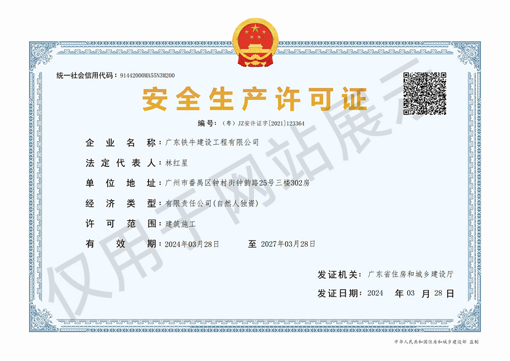 公司現(xiàn)具有國家住建部頒發(fā)的多項(xiàng)資質(zhì)。建筑工程施工總承包、建筑裝修裝飾工程專業(yè)承包、市政公用工程施工總承包、地基基礎(chǔ)工程專業(yè)承包、環(huán)保工程專業(yè)承包、城市及道路照明工程專業(yè)承包等,并且公司建立了科學(xué)完善、運(yùn)轉(zhuǎn)高效的管理體制,各專業(yè)技術(shù)力量配套齊全。