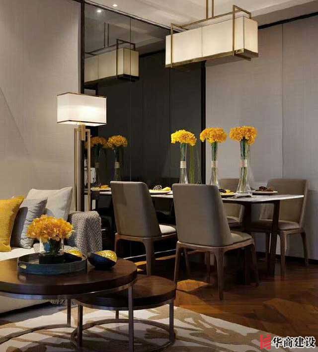 中國的顏色姜黃、秋香、湖藍(lán)、玄青,揮灑渲染在現(xiàn)代的空間里,簡約的設(shè)計(jì)在東方的情懷中,展現(xiàn)出回到家中尋找一片心中桃花源般的城市生活。