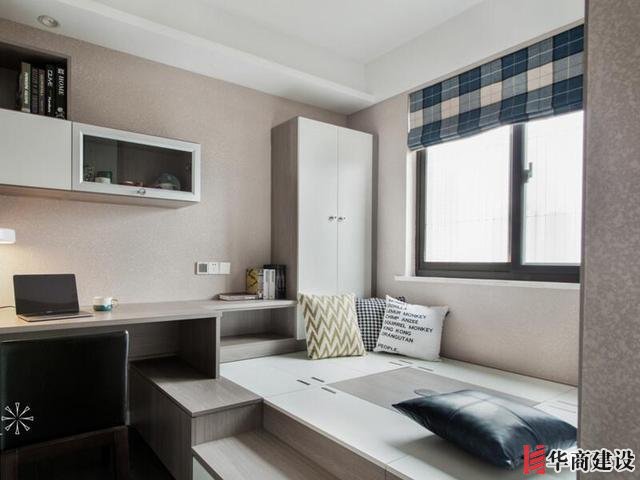 可以根據(jù)房間大小定制一個(gè)榻榻米+吊柜+書桌的設(shè)計(jì),一間房不僅可以休息,而且還能當(dāng)做書房使用,上下打出的柜子。留下了更多的儲(chǔ)物空間,就連反季的衣物都有地方收納了!