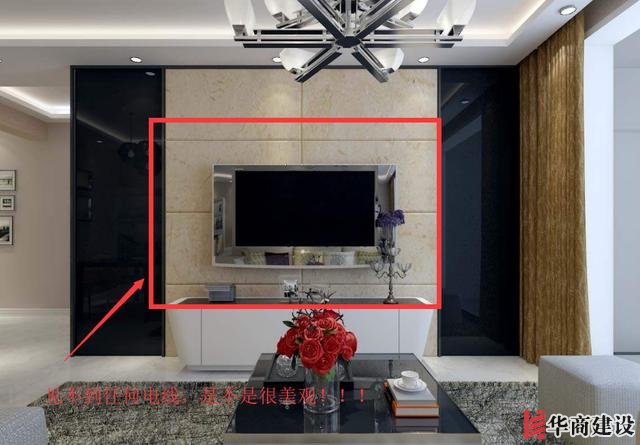 1、電視背景墻如果家想使用掛壁式的電視,那建議大家在做水電的時候,最好做一個隱蔽式的PVC大管,這樣后期就不會到處都是電線露在外面。