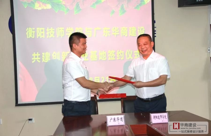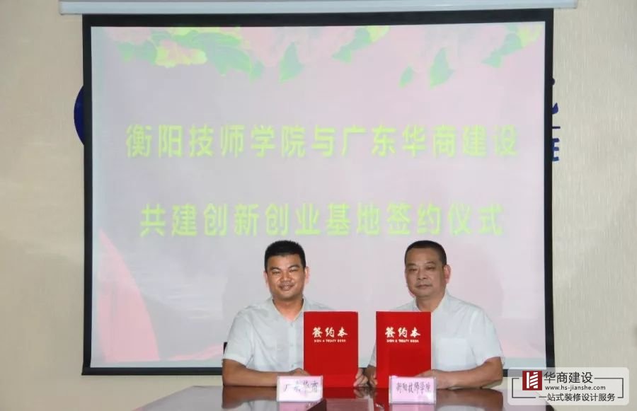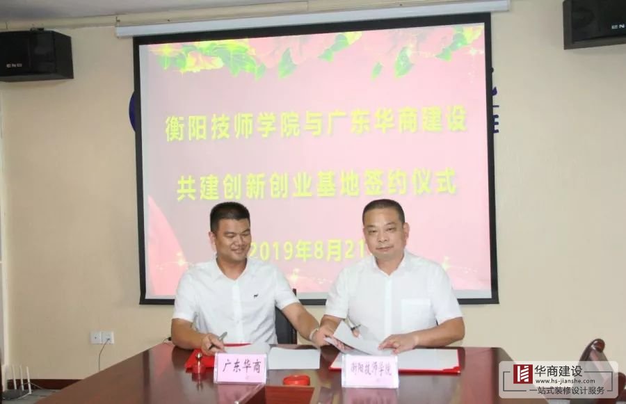 2019年8月21日,廣東華商建設(shè)與衡陽技師學(xué)院共建創(chuàng)業(yè)孵化基地簽約儀式,在衡陽技師學(xué)院隆重舉行,華商建設(shè)董事長林紅星帶領(lǐng)公司相關(guān)人員共同出席簽約儀式。